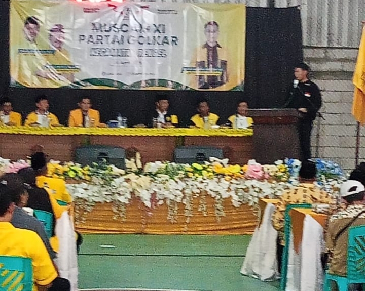 Acara yang berlangsung di sebuah gedung olahraga tersebut dihadiri oleh jajaran pengurus, kader, serta simpatisan Partai Golkar. Tampak para pengurus mengenakan atribut khas berwarna kuning, menandai identitas partai berlambang pohon beringin itu.